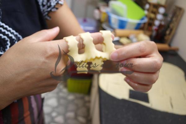 Déposer les griwechs sur un plateau, et continuer jusqu’à épuisement de la pâte.