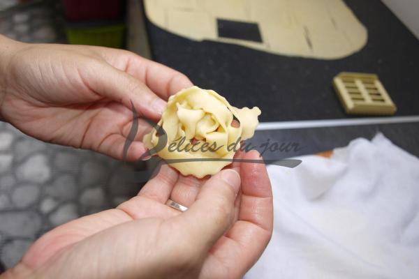 Arroser d'eau en la travaillant jusqu'à obtenir une pâte homogène. Ne pas trop la travailler.
