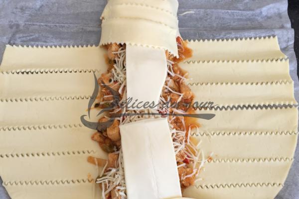 Ajouter le fromage et refermer en tressant comme sur la photo.