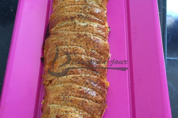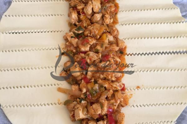 Feuilleté au poulet, poivrons et fromage.